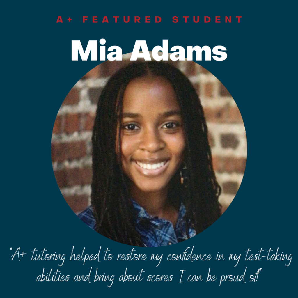 “A+ tutoring helped to restore my confidence in my test-taking abilities and bring about scores I can be proud of!”