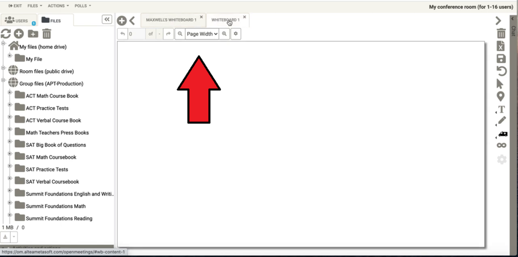 - Multiple whiteboards can be created during a lesson, or set up in advance, and accessed via tabs.